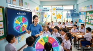 การเชื่อมโยงเครื่องมือ: แนะนำ “วงล้อสุ่มชื่อ (Kroocomboard)” บอกข้อดีว่ามันมีเสียงลุ้น มีสีสัน ทำให้เด็กมองว่าเป็นการ “เล่นเกม” ไม่ใช่การ “โดนเรียกไปทำโทษ”