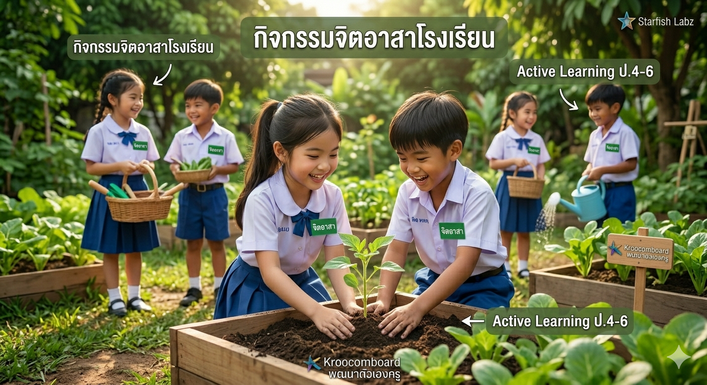 คุณครูหลายท่านอาจคิดว่า “กิจกรรมจิตอาสา” คือแค่การพาเด็กไปกวาดวัดหรือปลูกป่าตามหน้าที่ แต่จริงๆ แล้ว กิจกรรมนี้คือเครื่องมือ Active Learning ชั้นยอดที่ช่วยปลูกฝังสมรรถนะสำคัญให้เด็กๆ ได้เรียนรู้ความเห็นอกเห็นใจ (Empathy), การทำงานเป็นทีม (Teamwork), และความรับผิดชอบต่อส่วนรวม (Responsibility)